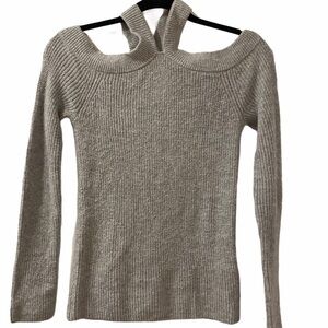 1.State Cross Neck Cold Shoulder Sweater Gray NWT