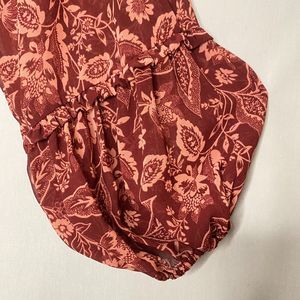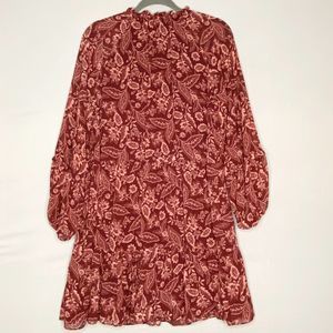 1.State Dress Large Burgundy Pink Floral Tunic Knee Length Fully Lined