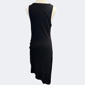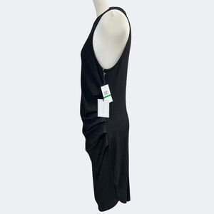 1.State Dress Womens Large Black Asymmetrical Ruched Tank Sleeveless Ribbed Midi