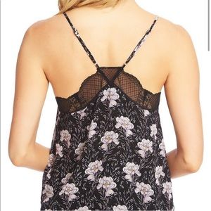 This adorable Racerback Cami by 1. State is detailed with lace trim and a cute floral print that will complete any night out.