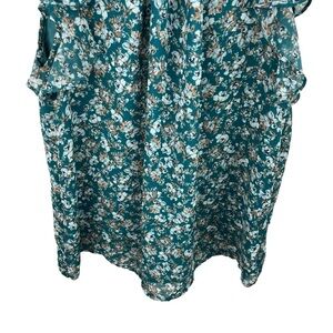Chiffon Ruffle short sleeves. Lined bodice. Rear keyhole double button closure. Excellent used condition.