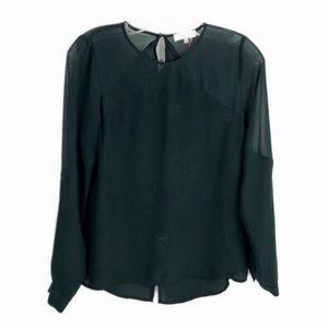 1.State Green Blouse with Shoulder Illusion Back Split Hi Low Hem