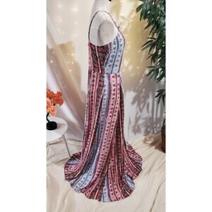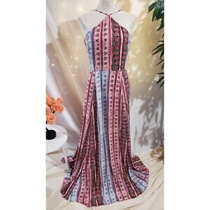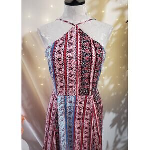 1State Halter Boho Maxi Dress Womens Size 10 Sleeveless Patriotic Red White Blue