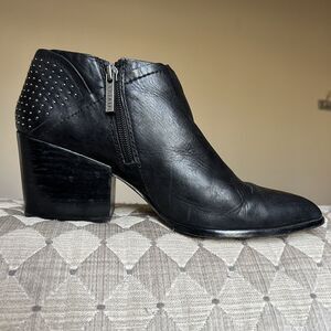 1.State Jelin Black Leather Ankle Studded Boots Block Heel Pointed Toe Women’s 9