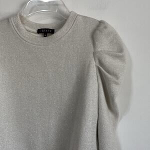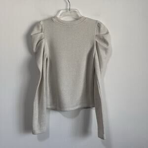 1.State Knit Top Sweater XS Draped Shoulder Cream Sparkle Long Sleeve Trendy
