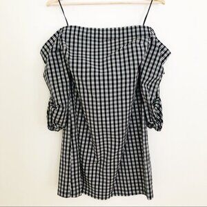 1.State Off the Shoulder Plaid Gingham Dress Black