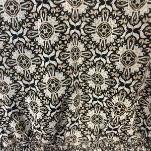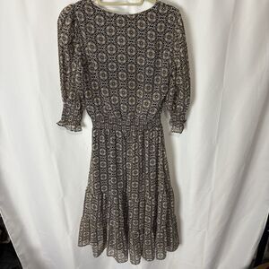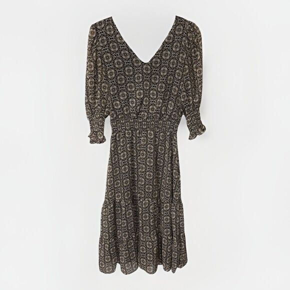 1State Paisley Printed V Neck Ruched Metallic Thread Boho Midi Dress Modest Sz S