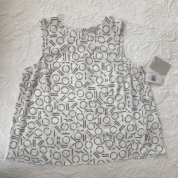 1.State New Sleeveless Pattern Flare Split Back Dressy Tank. It’s comfy and cool for a hot summer day or to wear under a blazer.