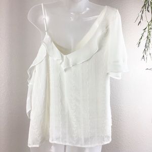 1.State | Ruffle One Shoulder Embroidered Top