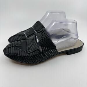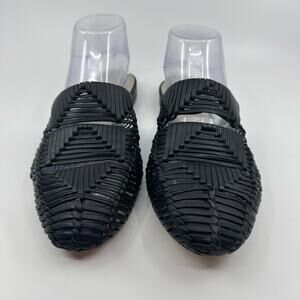 1.State Syre Woven Flats Mule Womens US9 Black Pointed Toe Leather Office Work