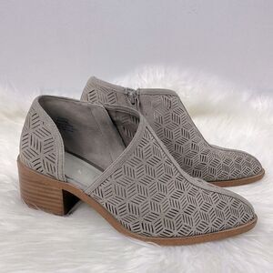 1. State | Tan pointy toe, laser cut detail suede booties size 6.0 , cutout side detail, zipper closure.