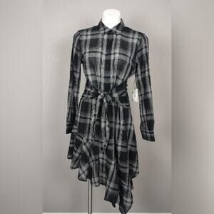 1.State Tie Waist Asymmetrical Hem Plaid Dress Size Medium