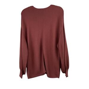 1.State V-Neck Ribbed Balloon Sleeve Terracotta Brown Oversize Sweater Small NWT