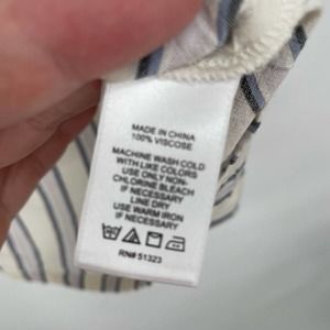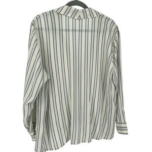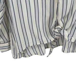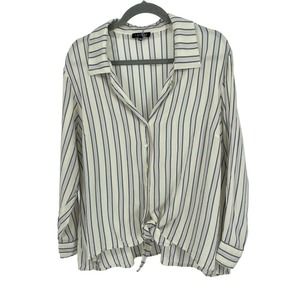 1.State White Blue Striped Button-Up Tied-Waist Blouse 2X U-008