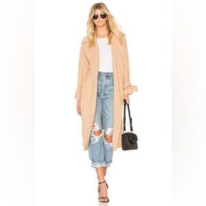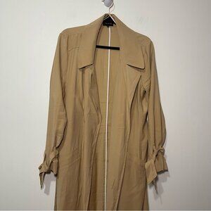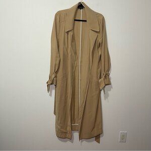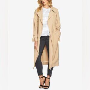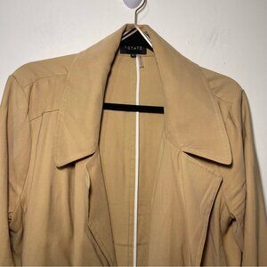 1.State Women’s Beige Trench Coat Size L Tie Waist & Sleeve light Belted duster