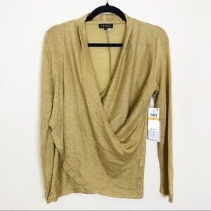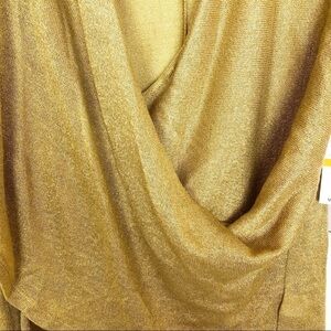 1.State Womens Emblem Gold Shimmer Draped Cross Front Top Blouse Small