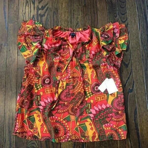 Color: Raspberry Rose. Red/Burnt Orange/Yellow Green/Pink **Last photo is shown for shape and style as it’s the same shirt but different color**