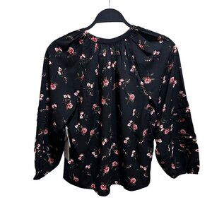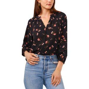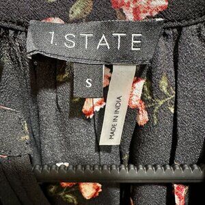 1.State Womens Size S Black Blooms Floral Print Pintuck Blouse
