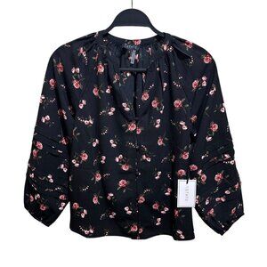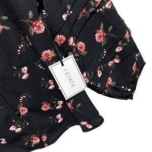 1.State Womens Size S Black Blooms Floral Print Pintuck Blouse NWT