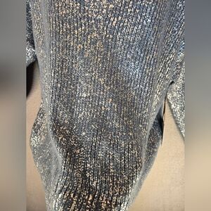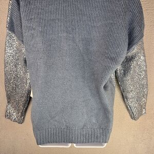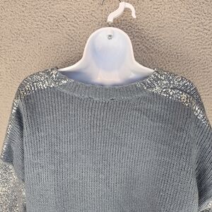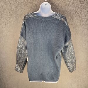1.State Womens Sweater Sz M Blue-Metallic Silver Throughout Front Oversized
