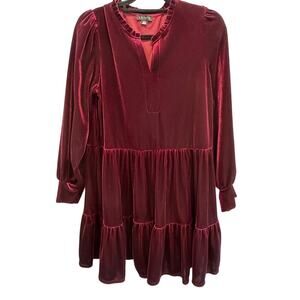 1.State Womens Tiered Peasant Dress Size Large Red Burgundy Velvet Whimsigoth