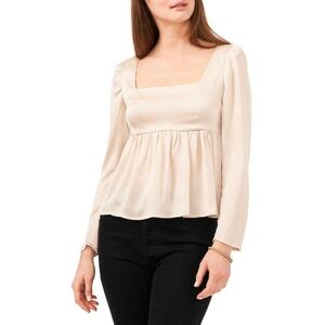 1.State Womens Winter Luxe Square neckline Puff Sleeve Blouse Tapioca multiple