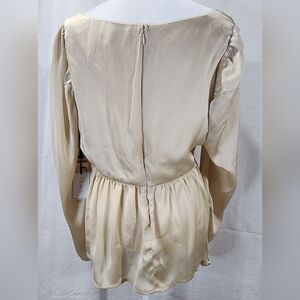 Chic and stylish blouse. Features long sleeves and a back zipper. Perfect for any occasion.