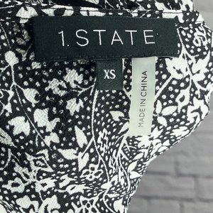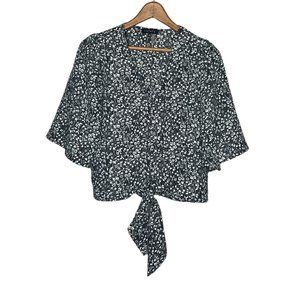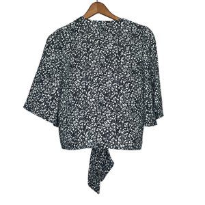 1.State XS Revolve Black Floral Crepe Bell Sleeve Boho Tie Front Crop Top Blouse