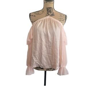 1.State peach ruffled boho blouse, size small, off shoulder with halter straps