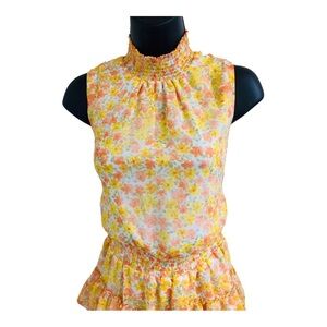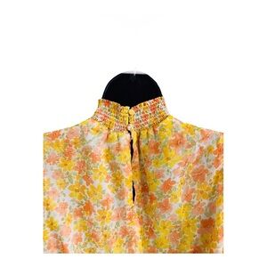 1. State pretty yellow floral smock neck smock waist tiered ruffled skirt sleeveless short dress size large new