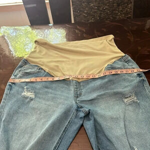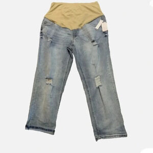 1Time and Tru Maternity Boyfriend Distressed Roll Cuff Jeans