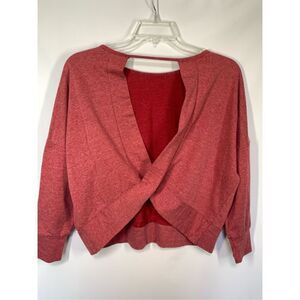 1—Womens Pullover Crew Neck Cross Open-Back Long Sleeve Sweatshirt Deep Red Medium