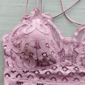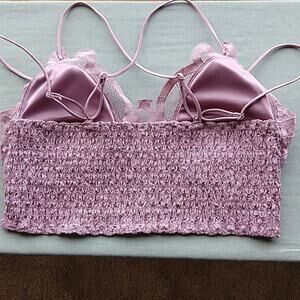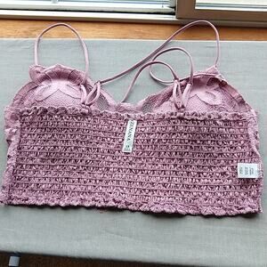 1X Burgundy Lace Bralette with Bra Pads Zenana double adjustable straps smocked
