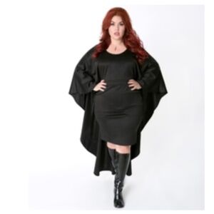 1X Halloween / Goth Flutter Sleeve Stretch Dress with Cape