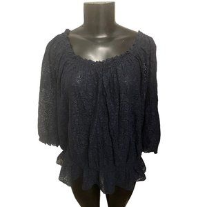 1X Izod Women Sheer Lace Top Elastic Off Shoulder Navy Blue