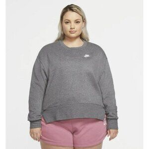 1X PLUS SIZE WOMEN'S Nike fleece crewneck sweatshirt gray CZ3373-071 TOP