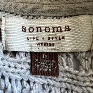Keywords: Sonoma, Sweater Vest, Knit Vest, Sleeveless Sweater, Open Front Vest, Beige Vest, Women's Vest, Plus Size Vest, 1X, Casual Vest, Layering Vest, Cotton Blend, Bohemian, Coastal Grandmother