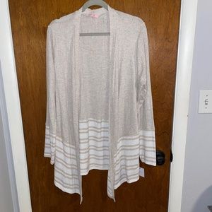 Gorgeous taupe / tan color with oatmeal/ivory stripes