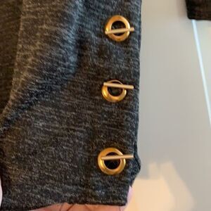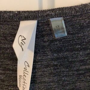 Size 1X gray three-quarter sleeve top with bling on both sides. The sides can be opened to allow more room. Preowned but like new condition. Oh my clothing is from smoke free and pet free home. Bundle and save