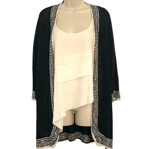 1X Torrid Cardigan Black Geometric Pattern Size 1 Size 16/18 winter spring summer fall office workwear professional white accents #cardigan