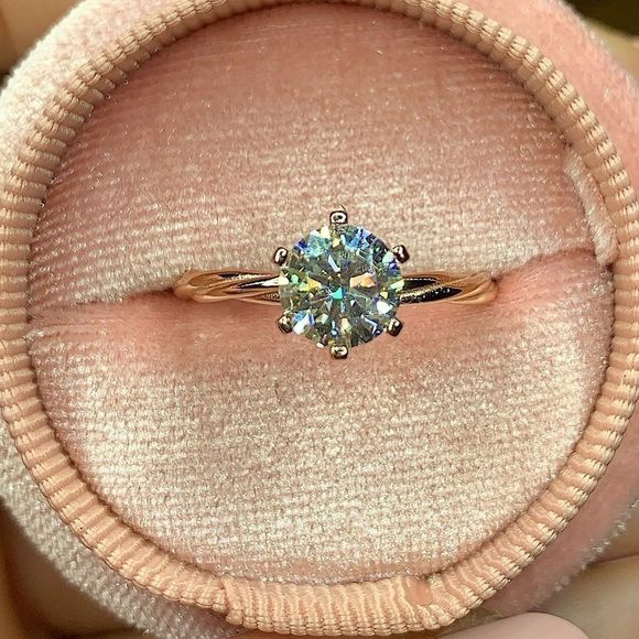 This timeless solitaire features a petite twist band that tapers up to embrace the center gemstone in delicate claw prongs.