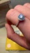 This stunning silver halo ring features a dazzling blue centerpiece surrounded by sparkling accents. Perfect for adding a touch of elegance to any outfit.
