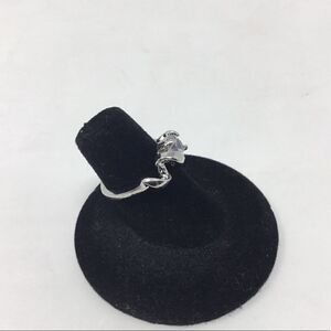 A unique corkscrew shape in band leads into beautiful brilliant round cz stone