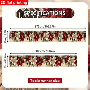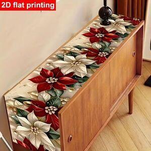 1pc 2D Flat Red Christmas Floral Table Runner - Premium Polyester Holiday Decoration, Suitable for Dining Tables, Kitchens, Outdoor Parties | Elegant Long Fabric Cloth Gift