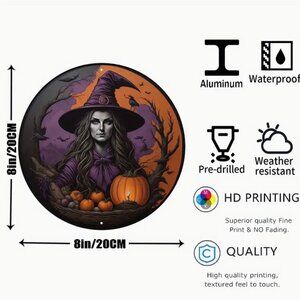 1pc 8x8inch, Aluminum Sign, Autumn Halloween Witch, Welcome Wreath Sign.