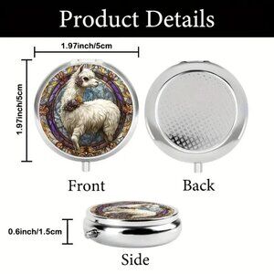 1pc Alpaca & Princess Floral Stained Glass Design - Decorative & Cute Pill Organizer. Round Portable Pill Organizer.