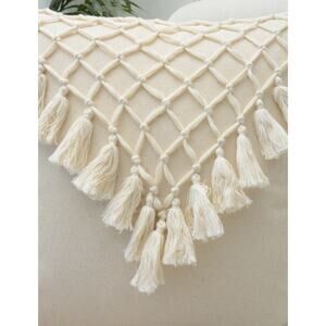 1pc Crochet Tassel Cushion Cover Cream Colored Without Filler