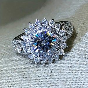 1pc Elegant Round Synthetic Crystal Cubic Zirconia Ring For Men
