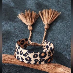 1pc Fashionable Leopard Pattern Tassel Decor String Bracelet For Women For Daily Decoration