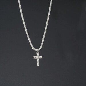1pc Korean Style Bright Rhinestone Cross Pendant Necklace For Women
